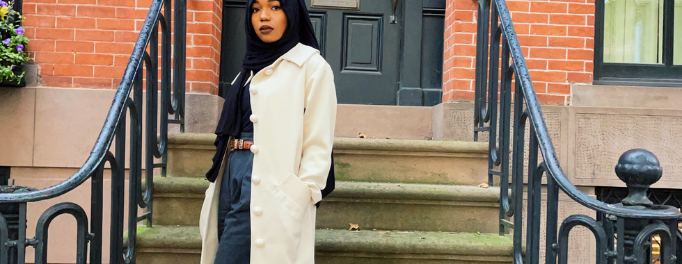 Ladies and Gents Fabihijabi has done it, she's finally moved to New York! She's making her way downtown walking fast but it's getting cold in New York and we don't play that! So of course I needed a fabulous coat to keep cozy and stylish this fall! This piece, thank god didn't require me to start totally from scratch, I ended up using the patterns that I made when making a custom coat for a friend of mine. The patterns were made and sized for a male so the coat came out really oversized but that's exactly how I wanted. The only modifications I did make to these patterns were extending the collar and the welts for the pockets! I love a huge pocket and collar! It gives the coat a 1950s vibe which mayyyyybe my favorite fashion era. Idk its just something about the simple but classic designs and style lines that just make everything effortlessly elegant. Anyways, I always added this oversized pearl buttons that I found at mood! It was love at first sight and it gave this coat the perfect pop! I also used a heavier weight ivory satin that I had laying around, that definitely transformed the design of the coat from casual to classic! So here's to autumn in New York and here's to the perfect timeless coat!